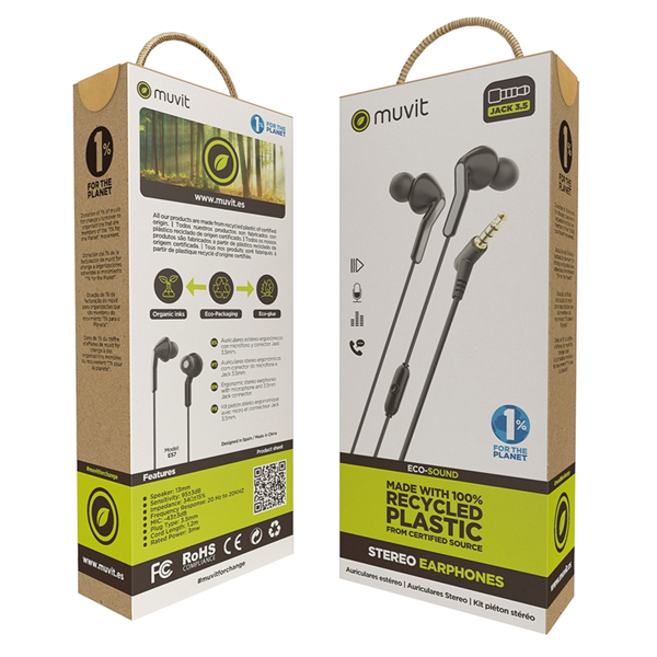 muvit for change auriculares estéreo E57 3.5mm negro