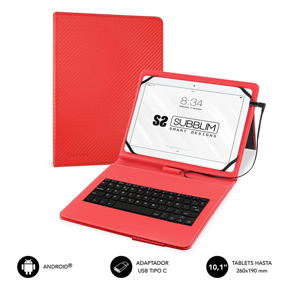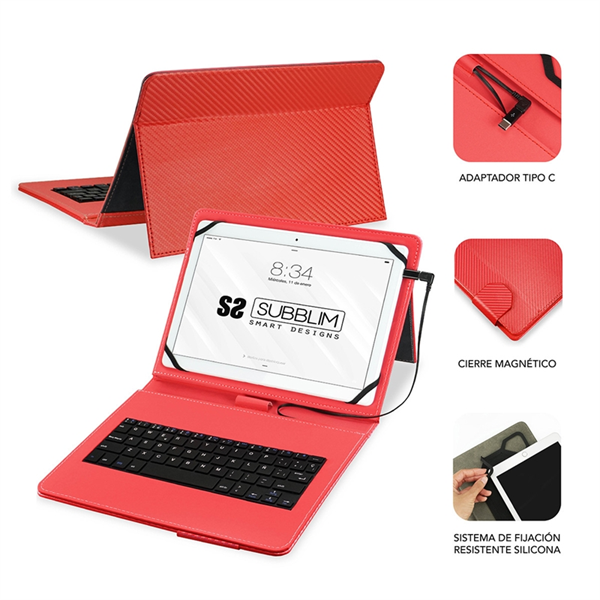 Subblim Keytab Pro USB funda tablet con teclado 10,1" roja